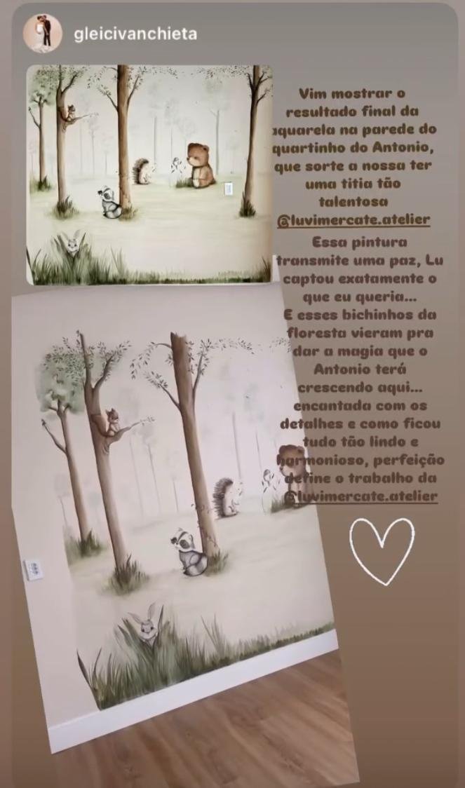 Vim mostrar o resultado final da aquarela no parede do quartinho do Antonio, que sorte a nossa ter uma titia tão talentosa Lu Vimercate.